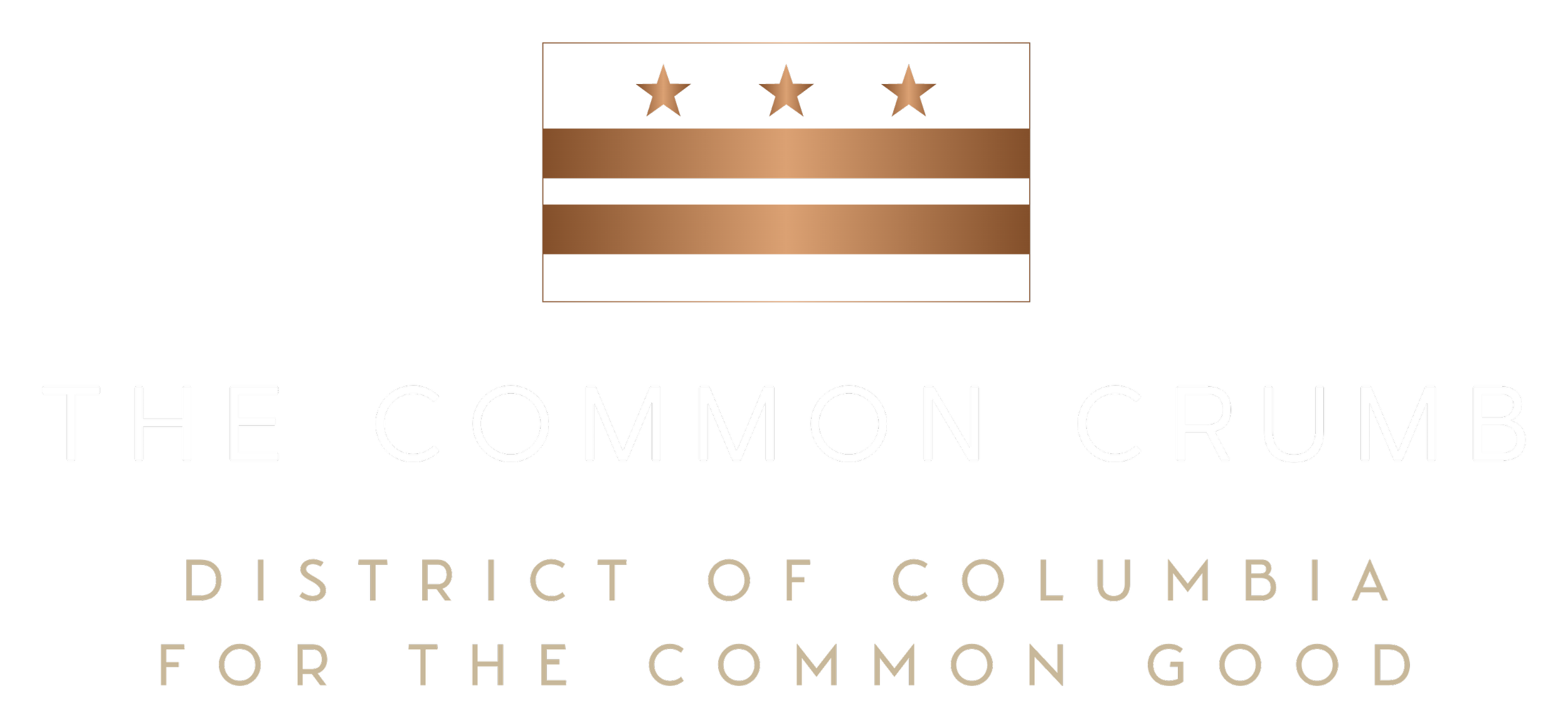 A burgundy background with a logo Washington DC Flag (featuring three stars and two horizontal stripes). Below the logo, text reads 'The Common Crumb' followed by 'For the Common Good District of Columbia'.